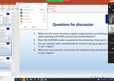 Das Projekt SUSTAIN zielte darauf ab, die Zusammenarbeit zwischen den Projektpartnern durch Peer-Learning zu stärken und ihre Kompetenzen zu erhöhen, um KMUs (kleine und mittlere Unternehmen) bei der Umsetzung von EU-Normen zu unterstützen. Die Partner*innen haben gemeinsam praktische und innovative Verfahren zur Unterstützung der erfolgreichen Anpassung von KMUs an EU-Normen entwickelt.
