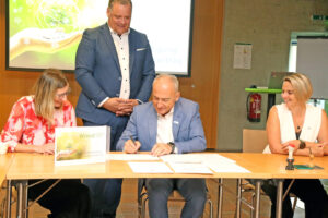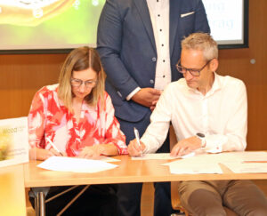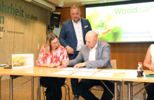 Vertragsunterzeichnung im Wood Vision Lab in Weiz